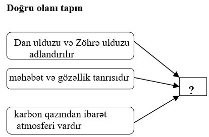Coğrafiya bölmələr Günəş sistemi tehsilim.info 705 Views Zəhmət olmasa, gözləyin... 1. C. Uilerin fikrinə əsasən işıq sürəti ilə hərəkət edən obyektlərin qara dəliyi tərk edə bilməməsinin səbəbiA.qravitasiya cazibə sahəsinin çox böyük olması B.kütləvi vulkan püskürməsiC.kainatın böyük olması və buradakı cisimlərin fırlanmasının zəifləməsiD.digər qalaktikaların təsirinin böyük olmasıE.iqlim dəyişmələri 2. A.Merkuri B.Venera C.Mars D.Yupiter E.Saturn 3. Uyğunluğu tapın1. Merkuri 2. Yer 3. Mars a) öz oxu ətrafında həddən artıq yavaş fırlanır və zəif atmosferə malikdir b) həyatın mövcudluğu vardır, cazibə qüvvəsi böyükdür c) Günəşdən olan məsafə əlverişli temperatur şəraiti yaradır d) səthi nəhəng çökəkliklərdən və kraterlərdən təşkil olunuşdur e) səmada qırmızı rəngdə görünən planetdirA.1 – a, d; 2 – b, c; 3 – e B.1 – a; 2 – b, c; 3 – d, eC.1 – d; 2 – c, e; 3 – a, bD.1 – a, e; 2 – b, d; 3 – eE.1 – e; 2 – c, d; 3 – a, b 4. Ayın Yerdən yalnız bir tərəfinin görünməsinin səbəbi:A.Ayın öz oxu ətrafında fırlanma dövrünün Yer ətrafında fırlanma dövrünə bərabər olmasıB.cazibə qüvvəsinin böyük olması və temperatur amplitudasının çox olmasıC.Günəş ətrafında fırlanma sürətinin çox böyük olmasıD.əsasən bərk süxurlardan təşkil olunması və daxilə doğru süxurların sıxlığının azalmasıE.Ayın öz oxu ətrafında fırlanma dövrünün Yer ətrafında fırlanma dövründən çox az olması 5. Aşağıdakılardan hansı doğrudur?A.B.C.D.E. 6. “ Böyük partlayış” nəzəriyyəsinə görə kainatın başlanğıcından indiyə qədər baş verən hadisələrin ardıcıllıqla düzün: 1. ilk ulduzların yaranması 2. ilk yeni qara dəliklərin yaranması 3. kosmik relikt şüalanma 4. protoqalaktikaların qovuşması 5. müasir qalaktikalar 6. qaranlıq dövrA.3, 6, 1, 4, 2, 5 B.3, 6, 1, 2, 4, 5C.6, 3, 4, 1, 5, 2 D.6, 4, 2, 1, 5, 3 E.1, 3, 4, 2, 6, 5 7. Bakıda saat 1030-dur. Ondan cənub-şərqdə yerləşən yay gündönümündə günəş şüalarının 76,5o bucaq altında göründüyü A məntəqəsində isə saat 1410-dur. A məntəqəsinin yerləşdiyi saat qurşağını və onun coğrafi koordinatlarını tapın.VII, 10o şm.en. və 105o ş.u.A.VII, 10o şm.en. və 105o ş.u.B.XXIII, 10o şm.en. və 5o q.u.C.IV, 37o şm.en. və 55o ş.u.D.III, 10o cn.en. və 105o ş.u.E.VII, 10o cn.en. və 105o ş.u. 8. Uyğunluğu tapın1. daxili planetlər 2. xarici planetlər a) diametri böyükdür və səthində temperatur çox aşağıdır b) hidrogendən təşkil olunmuş nəhəng qaz kütləsindən ibarətdir c) Günəş əıtrafında fırlanma müddəti böyükdür d) sıxlığı çoxdur e) peykləri daha azdır və hətta yoxdurA.1 – d, e; 2 – a, b, c B.1 – a, b; 2 – c, d, e C.1 – c, d, e; 2 – a, b D.1 – a, b, e; 2 – c, d E.1 – a, b, c; 2 – d, e 9. Günəş 21 sentyabr günü yuxarıdakı kimi A məntəqəsindən 3 saat geridə olan zaman yerli saatı A-dan 3 saat irəlidə olan B mərkəzindəki vəziyyəti müəyyən edin:A.B.C.D.E. 10. A.1 – C; 2 – B; 3 – D; 4 – AB.1 – A; 2 – B; 3 – C; 4 – DC.1 – C; 2 – D; 3 – B; 4 – A D.1 – B; 2 – A; 3 – D; 4 – CE.1 – C; 2 – D; 3 – A; 4 – B 11. Uyğunluğu tapın1. Günəş fəallığı 2. Günəş ləkələri 3. Günəş küləyi 4. Maqnit qasırğaları a) Günəş küləyinin qasırğa şəklində Yer atmosferinə daxil olması və Yerin maqnit sahəsi ilə qarşılıqlı təsirindən əmələ gəlir b) Günəşdə baş verən bütün fiziki dəyişikliklərin məcmusu c) Günəşdən kosmik fəzaya şüaların, hissəciklərin, maqnit sahələrinin məcmusudur d) Günəşin səthində temperaturun nisbətən aşağı olduğu hissələrin Yerdən görünüşüA.1 – b; 2 – c; 3 – b; 4 – aB.1 – d; 2 – b; 3 – a; 4 – cC.1 – c; 2 – d; 3 – b; 4 – aD.1 – b; 2 – d; 3 – c; 4 – a E.1 – a; 2 – b; 3 – c; 4 – d 12. A.1 – c, e; 2 – a, f; 3 – b, dB.1 – a, b; 2 – c, e; 3 – d, fC.1 – c, e; 2 – d, f; 3 – a, b D.1 – b, d; 2 – a, c; 3 – e, fE.1 – c, e; 2 – b, f; 3 – a, d 13. A.1,5B.3,4C.1,4D.3,5E.1,2 14. A.Florida yarımadası, Braziliya yaylası B.Baffin Torpağı, Çukot yarımadasıC.Braziliya yaylası, Çukot yarımadasıD.Florida yarımadası, Baffin TorpağıE.Braziliya yaylası, Baffin Torpağı 15. İlboyu gecə və gündüzün uzunluqları arasında vaxt fərqi daha az olan adalar:A.Britaniya, İslandiya B.Sardiniya, Kuril C.Şpitsbergen, Kuba D.Sumatra, QalapaqosE.İslandiya, Tasmaniya 16. Müşahidəçi aşağıdakı paralellər boyu qərbdən şərqə 400 km getdi. Hansı paralel boyunca hərəkət etsə daha çox meridian dərəcəsi qət edəcəkdir ?A.70o şm. en.B.ekvator C.25o cn.en.D.30o şm.en.E.50o cn.en. 17. 60o şm.en və 20o ş.u-dan şimal qütbünədək 0o azimutla, sonra 180o azimutla 5555 km məsafə qət edən təyyarənin endiyi A məntəqəsinə aid olan əlamətlər: qütb gecə və gündüzləri müşahidə olunur Bakıdan cənub-şərq istiqamətində yerləşir Günəş ildə iki dəfə zenitdə olur Bakı ilə 2 saat qurşaq fərqi var qütb işıqlanma qurşağında yerləşir qış gündönümündə günəş şüaları 43,5o bucaq altında düşürA.4,5B.2,6C.1,3D.2,4E.1,5 18. A.60 və 40 B.70 və 50 C.65 və 45 D.75 və 40 E.60 və 50 19. Hansı məntəqələrdə fəsli dəyişkənlik aydın müşahidə edilmir 80o cn. en. və 125o q.u. 38o cn. en. və 135o ş.u. 7o şm. en. və 15o ş.u. 44o şm. en. və 75o ş.u. 4o cn. en. və 100o q.u. 40o şm. en. və 20o ş.u.A.2,4,6B.1,2,3C.1,3,5D.4,5,6E.1,3,6 20. A.2,4,6B.1,2,3C.1,4,5D.4,5.6E.1,3,6 Loading...