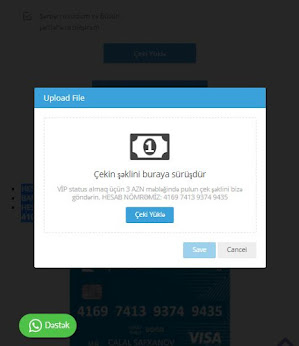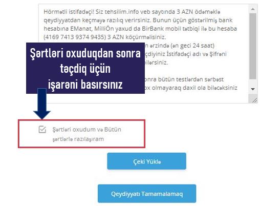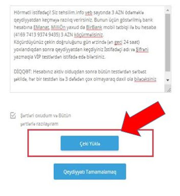 hesaba köçürmək və köçürdüyünüz vəsaitin qəbzini "Çeki Yüklə" düyməsiylə bizə göndərməkdir.