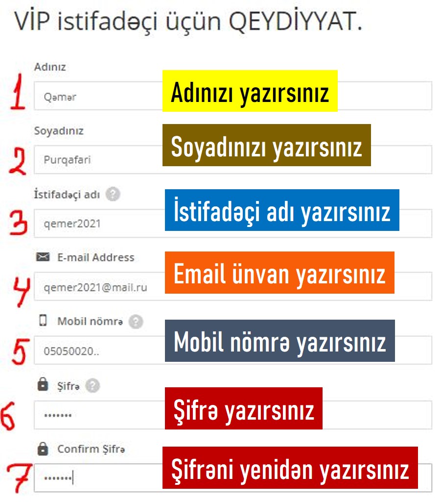 5 və 6 olan hissələrə saytda daxil olmaq üçün ŞİFRƏ yazırsınız. Çalışın şifrə yazarkən rəqəmlərdən istifadə edin ki sizin üçün daha rahat olsun