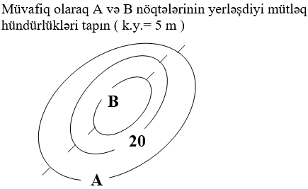 Coğrafiya bölmələr Yer səthinin təsvi; horizontallar, azimut, qütb ulduzu tehsilim.info 979 Views Zəhmət olmasa, gözləyin... 1. A.20 mB.30 mC.35 mD.10 mE.15 m 2. A.95 mB.80 mC.70 mD.65 mE.100 m 3. A.Görə bilərlər. Çünki təpənin eyni yamaclarında yerləşirlər.B.Görə bilməzlər. Çünki dərənin müxtəlif yamaclarında yerləşirlər.C.Görə bilməzlər. Çünki təpənin müxtəlif yamaclarında yerləşirlər.D.Görə bilməzlər. Çünki təpənin eyni yamaclarında yerləşirlər.E.Görə bilərlər. Çünki dərənin müxtəlif yamaclarında yerləşirlər. 4. A.E>D=C>A>BB.B>A=C>D>E C.A>D=C>E>B D.E>D=C>B>A E.E>D > C>A>B 5. A.3 m/km B.1 m/km C.1,5 m/kmD.0,5 m/km E.4,5 m/km 6. A.A- 15 m, B- 25 mB.A- 10 m, B- 30 m C.A- 25 m, B- 15 m D.A- 5 m, B- 25 m E.A- 10 m, B- 25 m 7. A.10 m cn, q B.30 m cn, q C.50 m, cn, q D.0 m, cn, q E.20 m cn, q 8. Horizontallara aid olan əlamətlər1. plan və xəritələrdə eyni mütləq hündürlüyə malik olan nöqtələri birləşdirən səlis əyri xətlərdir 2. iki qonşu horizontal arasında qalan məsafə kəsmə yüksəklik adlanır 3. horizontallar paralellər olduğu üçün bir-biri ilə kəsişirlər 4. hündürlük artdıqca horizontallarar asındakı sıxlıq sayı azalır 5. horizontallar bir-birinə daha yaxın (sıx) yerləşərsə meyllik və axın sürəti böyük, dik yamaclı olur.A.3,4,5B.1,2,5C.1,2,4D.2,3,5E.1,3,4 9. Respublikamızda mütləq hündürlüyünün Xəzər dənizi səviyyəsindən ölçülməməsinin səbəbi:A.Xəzər dənizinin sahilində yerləşməməsiB.Xəzər dənizinin okean səviyyəsindən aşağıda yerləşməsiC.Xəzər dənizinin səviyyəsinin kəskin dəyişməsiD.Xəzər dənizinin səviyyəsinin nisbətən sabit qalmasıdırE.Xəzər dənizinə bolsulu çayların tökülməməsi 10. A.60 m – B – 80 m B.80 m – B – 100 m C.100 m – B – 120 m D.50 m – B – 70 m E.90 m – B – 110 m 11. A.70 m və 20 mB.70 m və 25 mC.75 m və 25 mD.75 m və 20 m E.75 m və 15 m 12. A.kəsmə yüksəkliyi 100 m-dir.B.B nöqtəsi A məntəqəsindən yüksəkdə yerləşir.C.nisbi hündürlük 400 m-dir.D.A və B nöqtələri təpənin eyni yamacında yerləşirlər.E.A nöqtəsinin mütləq hündürlüyü 150 m-dir 13. Berqştrixlərə aid olan əlamətlər: 1. nisbi hündürlüyü göstərirlər 2. səth suların axım istiqamətini göstərirlər 3. yamacın meyllik istiqamətini əks etdirirlər 4. zirvələri birləşdirən əyri xətlərdir 5. horizontallara prpendikulyar çəkilmiş qısa xətlərdir 6. mütləq hündürlüyü göstərirlərA.1,3,4B.2,4,5C.1,2,6D.1,3,6E.1,3,5 14. A.30mB.15mC.35mD.5mE.20m 15. Dünyanın fiziki xəritələrində daha çox horizontallarla təsvir edilən obyektlər:1. Amazon ovalığı 2. Qafqaz dağları 3. Qərbi Sibir düzənliyi 4. Atlas dağları 5. Efiopiya yaylasıA.2,4,5B.1,2.3C.3,4.,5D.1,2.4E.1,3,5 16. Uyğunluğu tapın:1. hipsometrik 2. batiqrafik 3. izobat 4. izohips a) eyni mütləq hündürlüyə malik olan nöqtələri birləşdirən səlis əyri xətlərdir b) eyni dərinliyə malik olan nöqtələri birləşdirən qapalı xətlərdir c) fiziki xəritələrdə yüksəklikləri ölçən şkaladır d) fiziki xəritələrdə dərinlikləri ölçən şkaladırA.1 – c, 2 – d, 3 – a, 4 – bB.1 – d, 2 – c, 3 – b, 4 – aC.1 – c, 2 – d, 3 – b, 4 – a D.1 – d, 2 – a, 3 – a, 4 – bE.1 – c, 2 – a, 3 – b, 4 – d 17. A.3,4,5B.1,2.,5C.1,2.4D.2,3.5E.1,3.4 Loading...