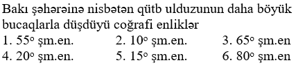 3. Qütb ulduzunun cənub yarımkürəsində müşahidə edilməməsinin səbəbi: